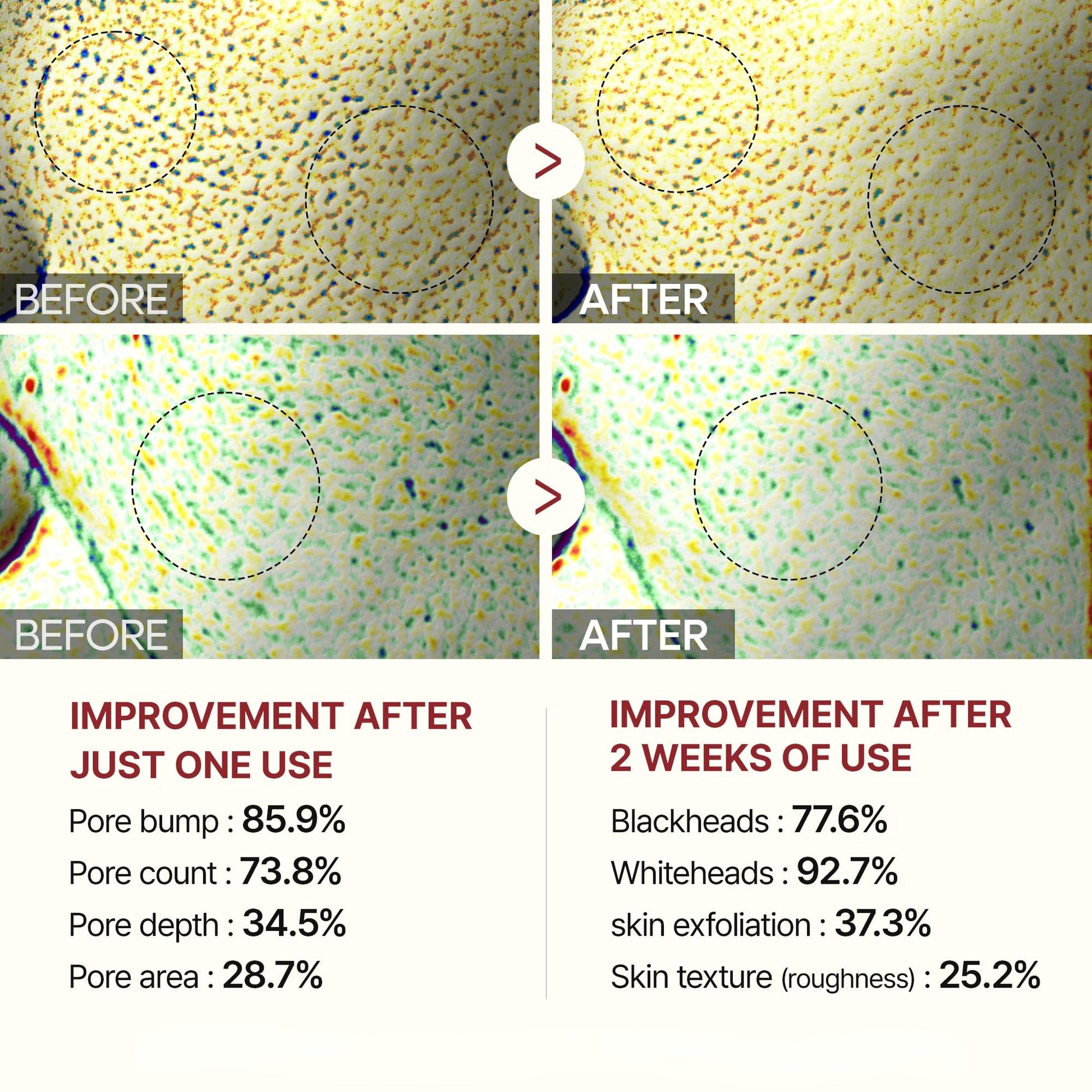 - Deep Pore Purification – Draws out impurities, sebum, and buildup from deep within, leaving skin visibly clearer and brighter after one use.